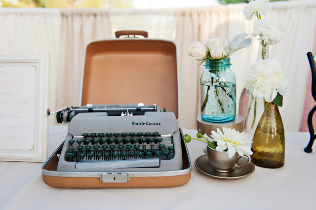 | solid, lush peonies with touches of dusty miller. photo courtesy of Christine Olson Photography |