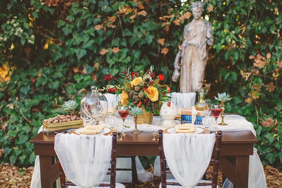crisp air, leaves turning colors, deep shades of gold, orange and red. fall is in the air with this styled shoot. this casual elopement features vintage gold, succulents, and cardigans. we had so much fun with the floral incorporating gold roses, persimmons, artichokes, date palms, burgundy orchids, scabiosa, succulents, ranunculus, privet berries, magnolia leaves and eucalyptus.