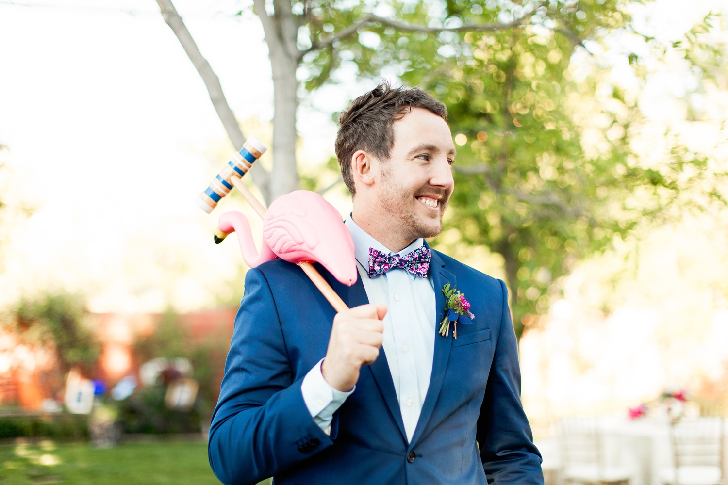 whimsical details, bold floral patterns nestled in the perfect cedar city garden location this wonderland wedding had it all, including flamingo croquet.